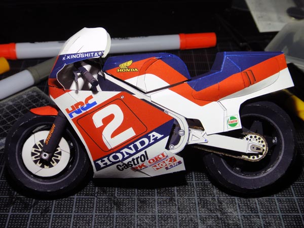 ちなみにこれは1983年全日本ロードレースに出場していたHRCワークスライダーの木下恵司のNS500です。