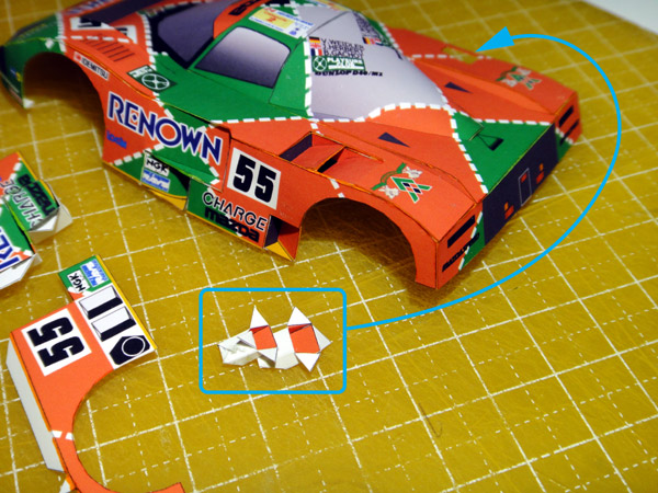 箱を2個作ってくっ付け合わせてボディの内側から接着して下さい。